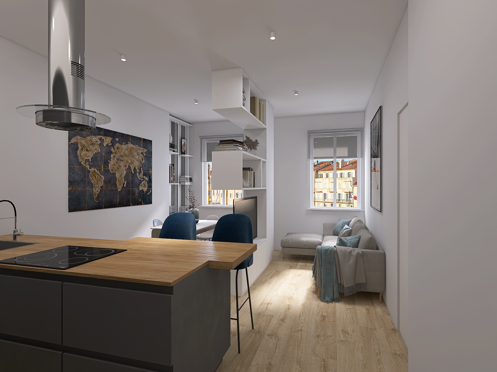 **I rendering 3d evidenziano il potenziale arredamento sfruttando le misure interne ma non costituiscono vincolo contrattuale.