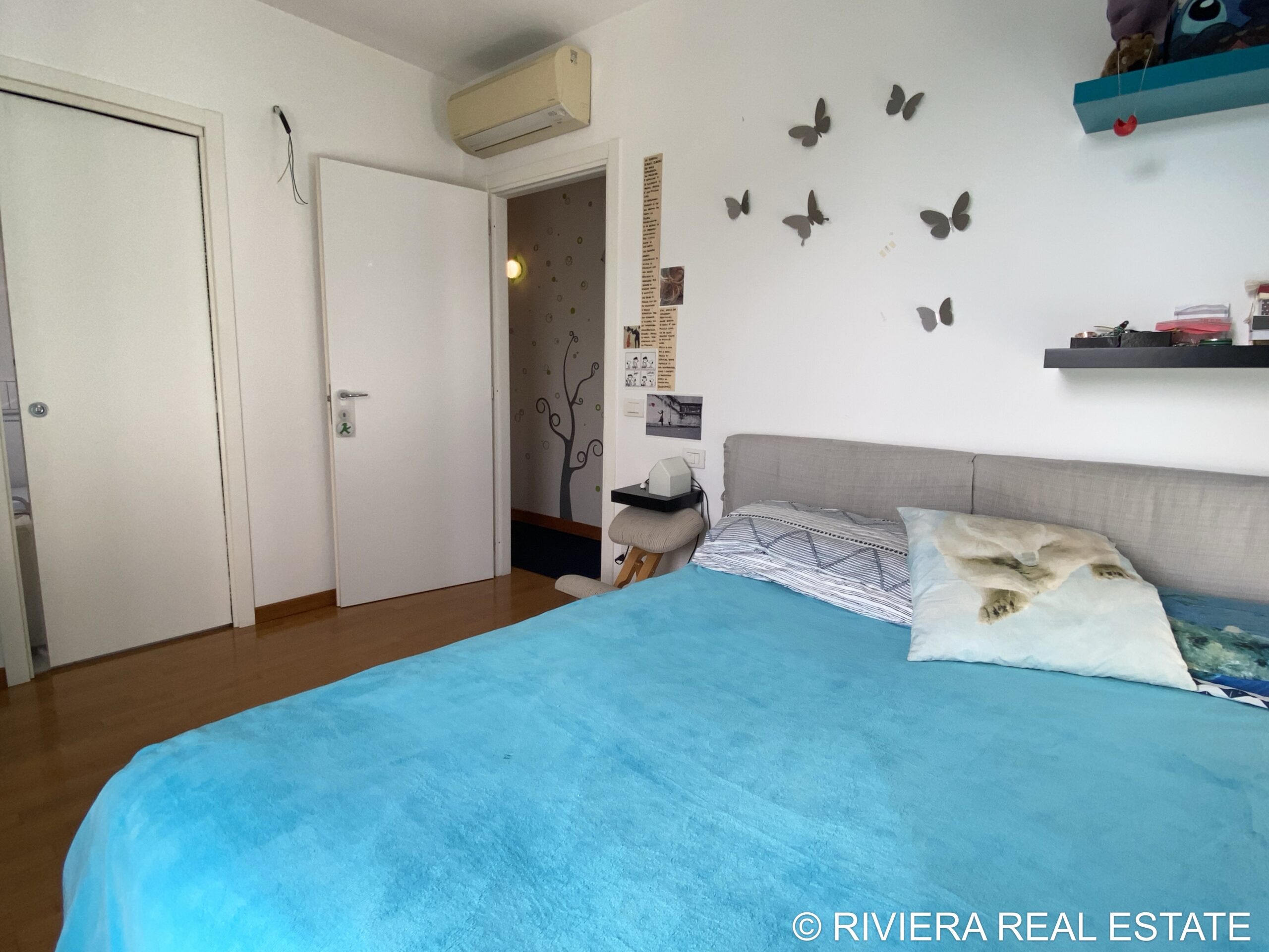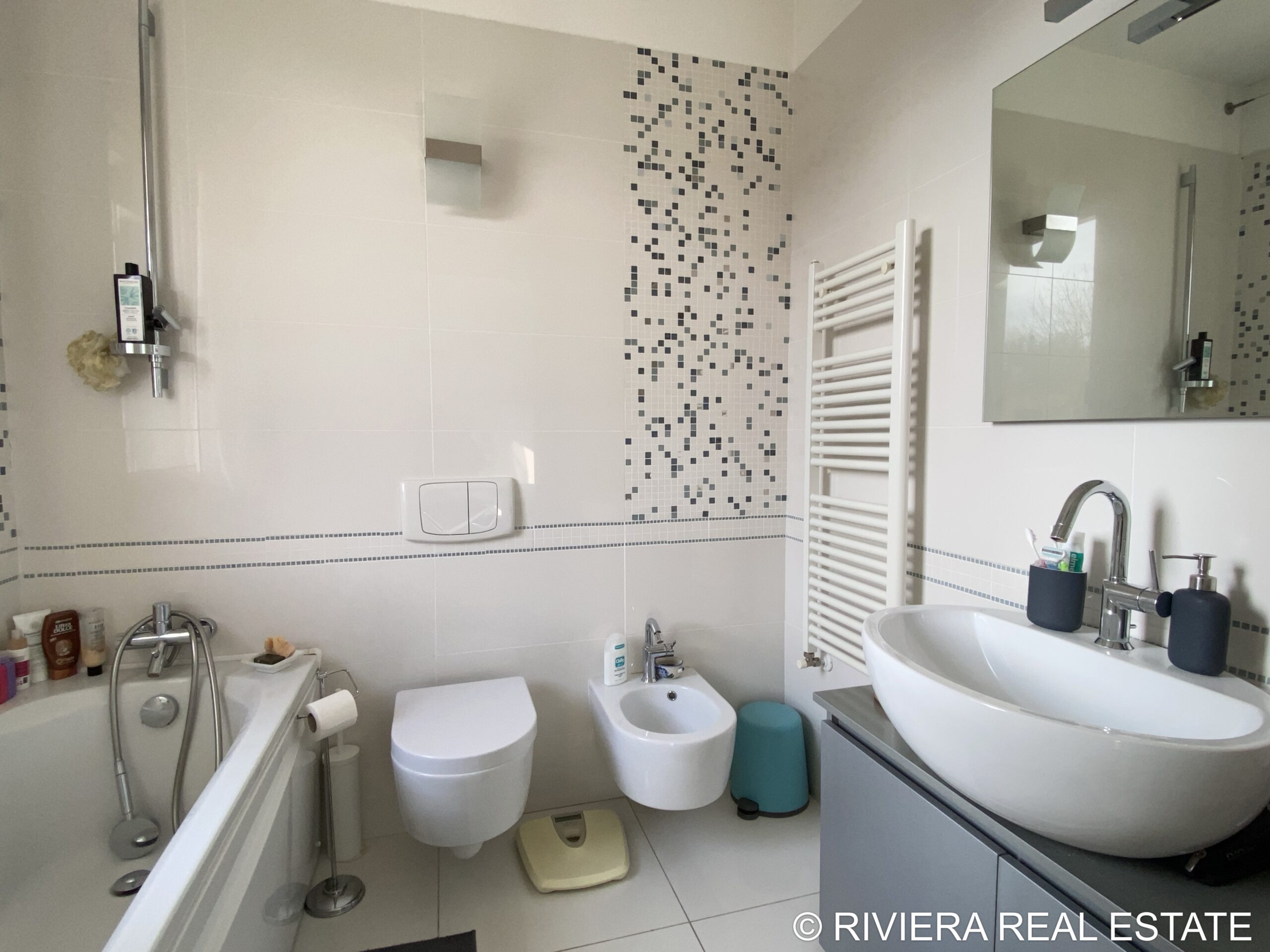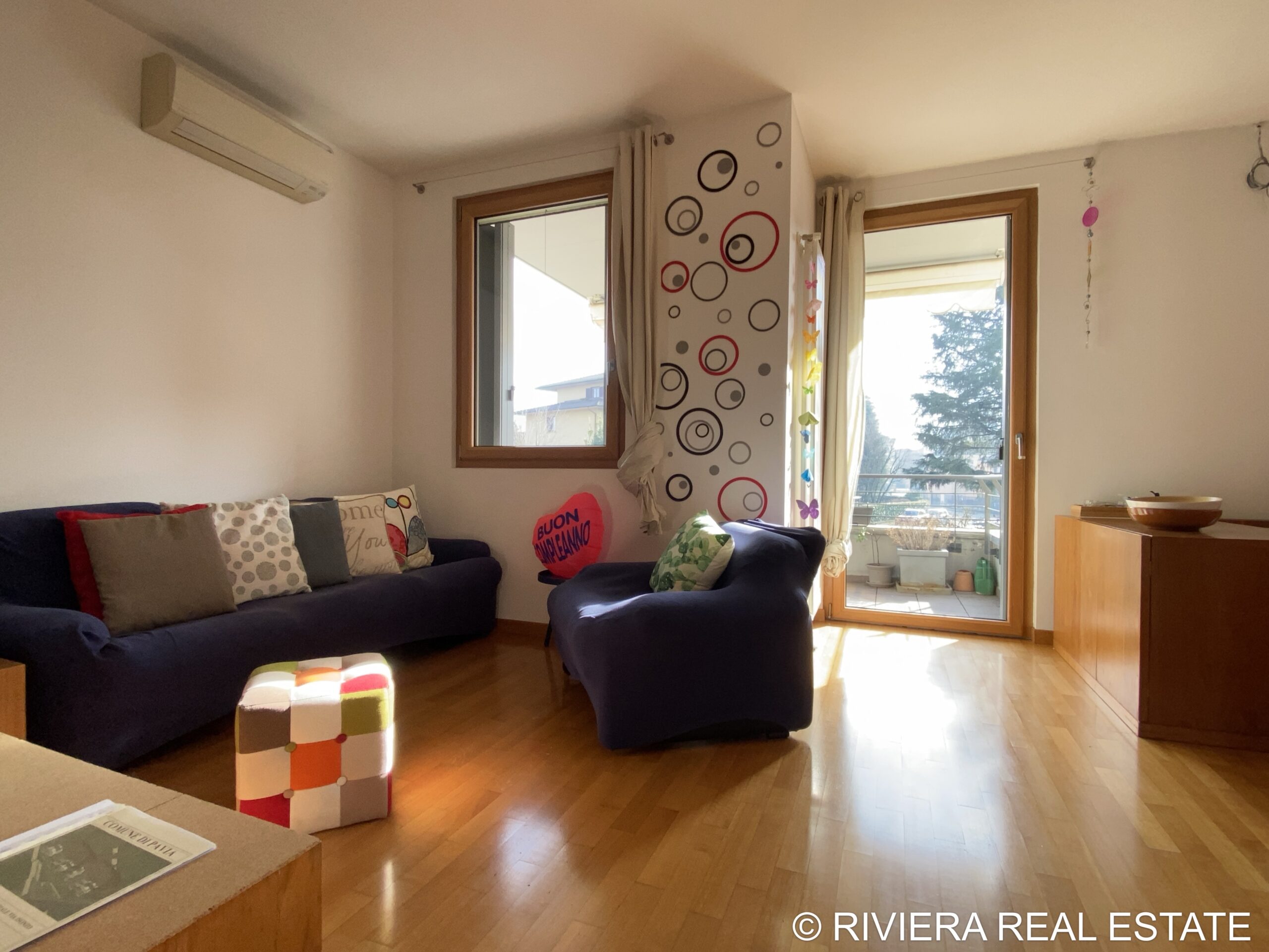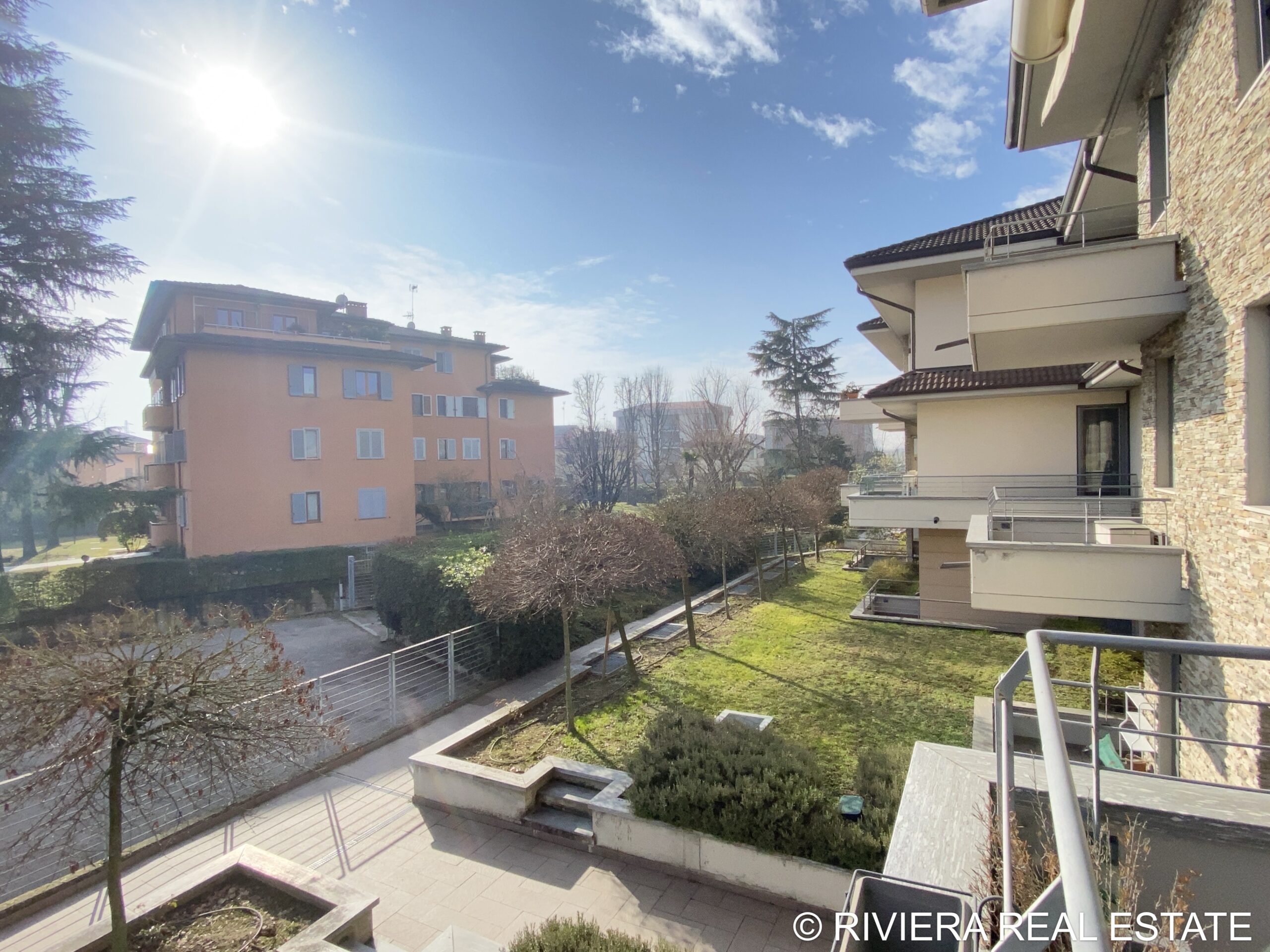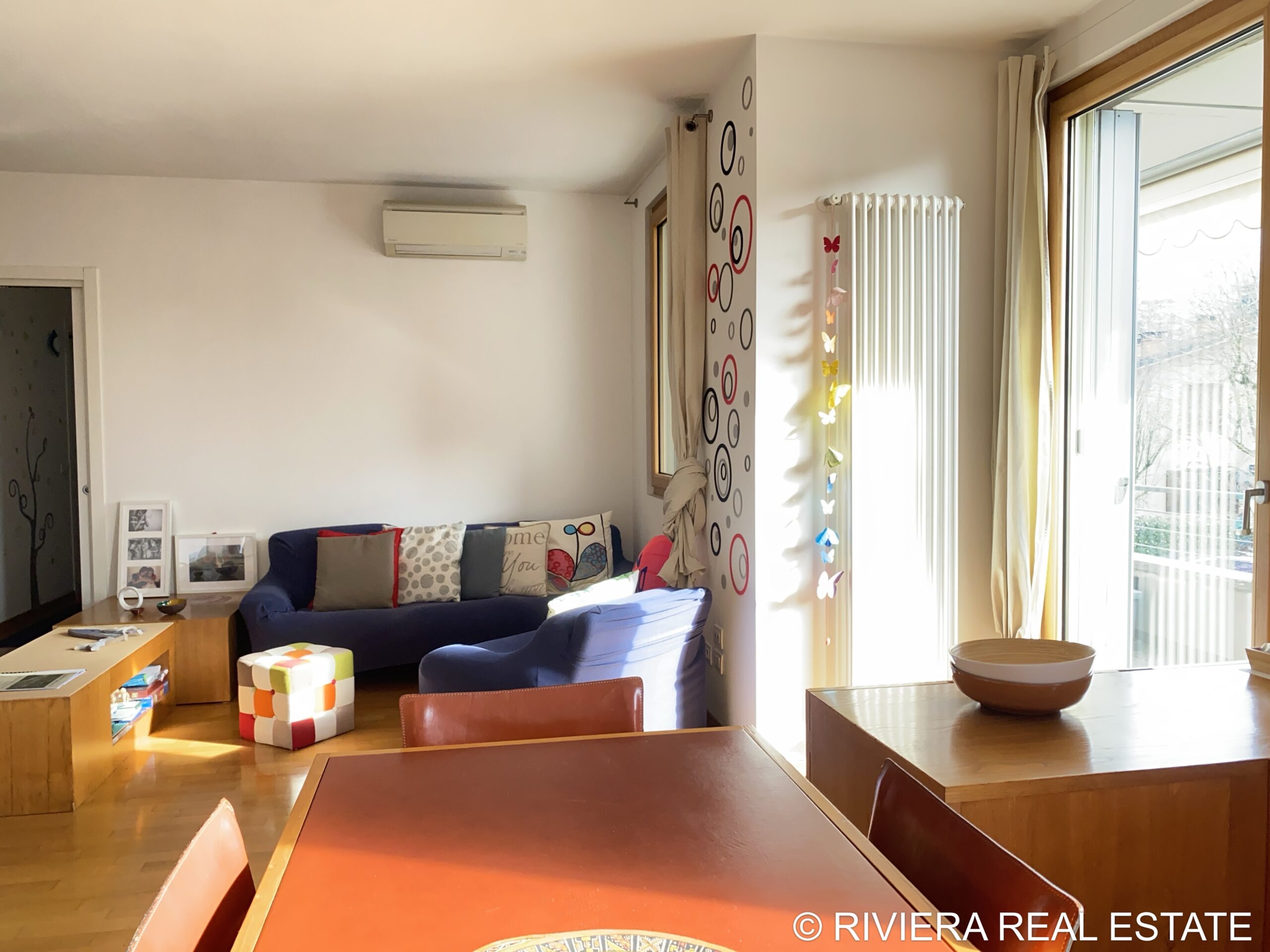 L’appartamento è composto da un ingresso che conduce ad una luminosa e ampia zona living con cucina a vista servita da una grande balconata/terrazzino prospiciente Via Isonzo e il verde condominiale, due camere da letto, disimpegno, due bagni di cui uno finestrato con box doccia e vasca e un locale ripostiglio/lavanderia. Completa la proprietà una cantina di pertinenza posta al piano interrato e un box singolo.